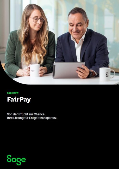 • Expertenbegleitung für Ihre FairPay-Umsetzung: Mit praxisorientierter Beratung von Deloitte wird Sage DPW FairPay zur ganzheitlichen Lösung – von der Entwicklung einer einheitlichen Jobarchitektur, über die Einführung marktgerechter Vergütungsprozesse, bis hin zur konkreten Unterstützung bei der Implementierung von FairPay. Das Ergebnis: eine sichere, nahtlos integrierte Umsetzung der EU-Richtlinie in Sage DPW.